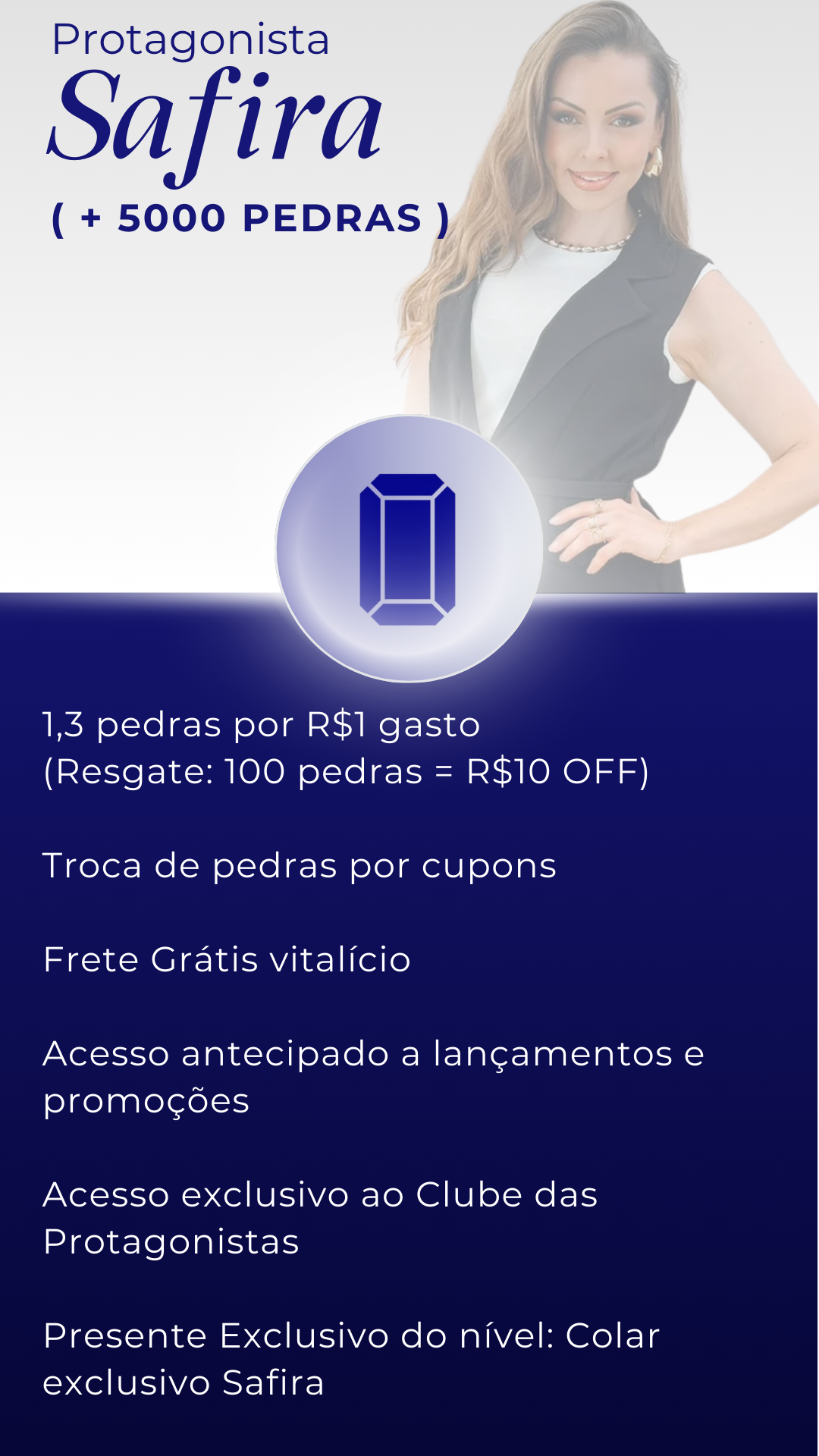 O desconto do Clube das Protagonistas não pode ser combinado com outras ofertas ou cupons. Apenas um desconto pode ser aplicado por pedido. Se houver uma promoção em andamento, você precisará escolher entre o desconto da promoção ou o resgate das suas pedras.