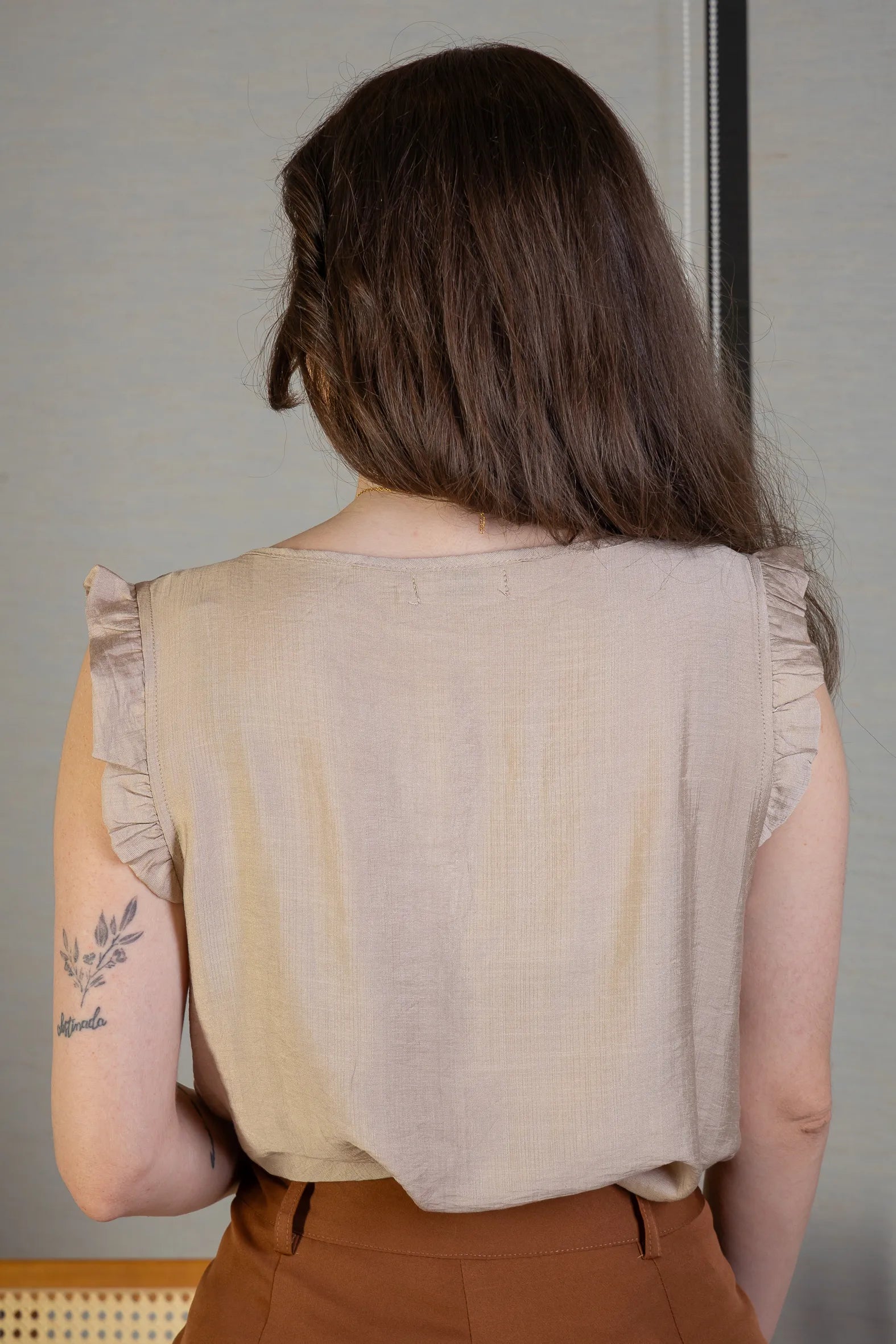 Blusa Regata Detalhe Laços Poli-linho Sandy Lima Bege