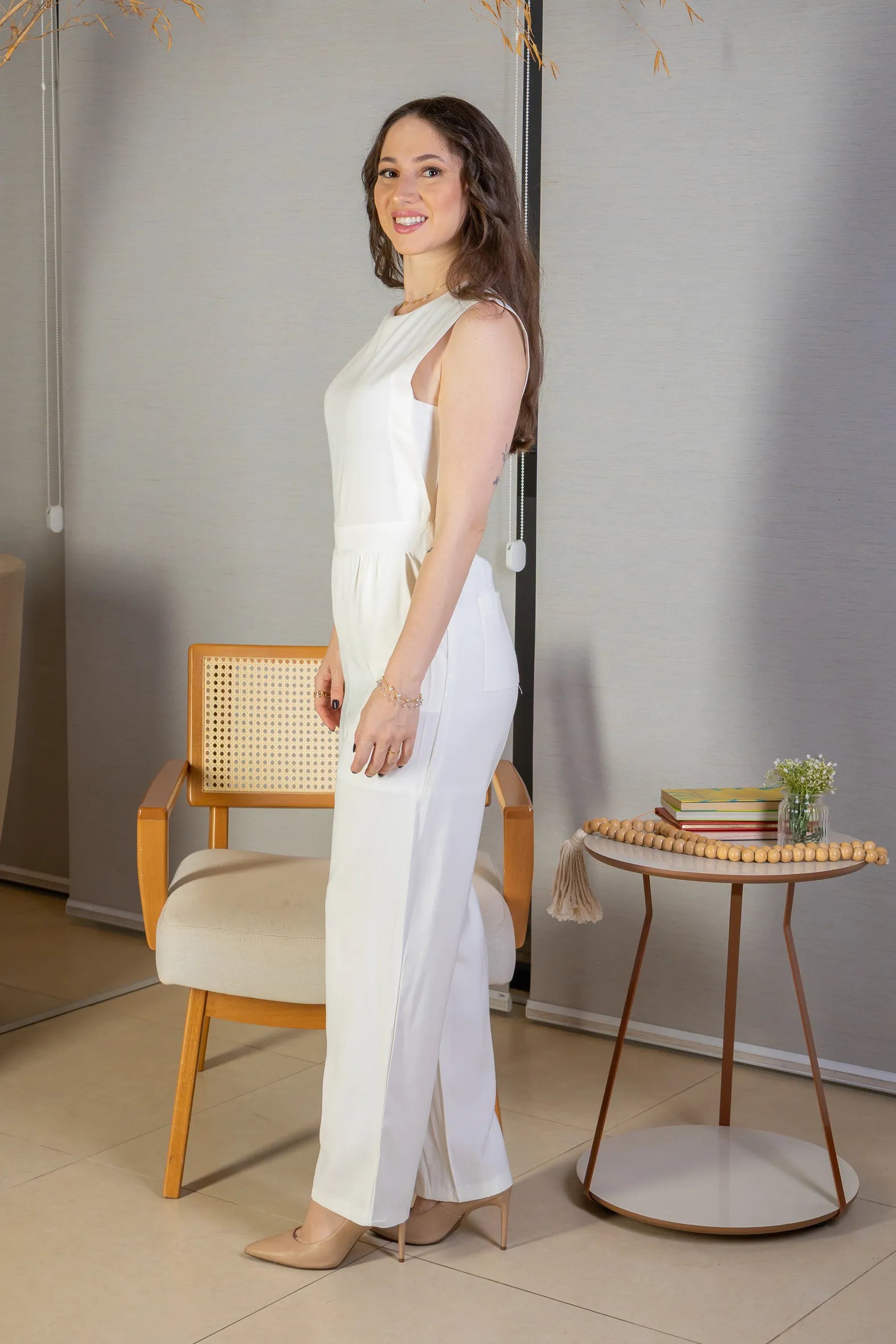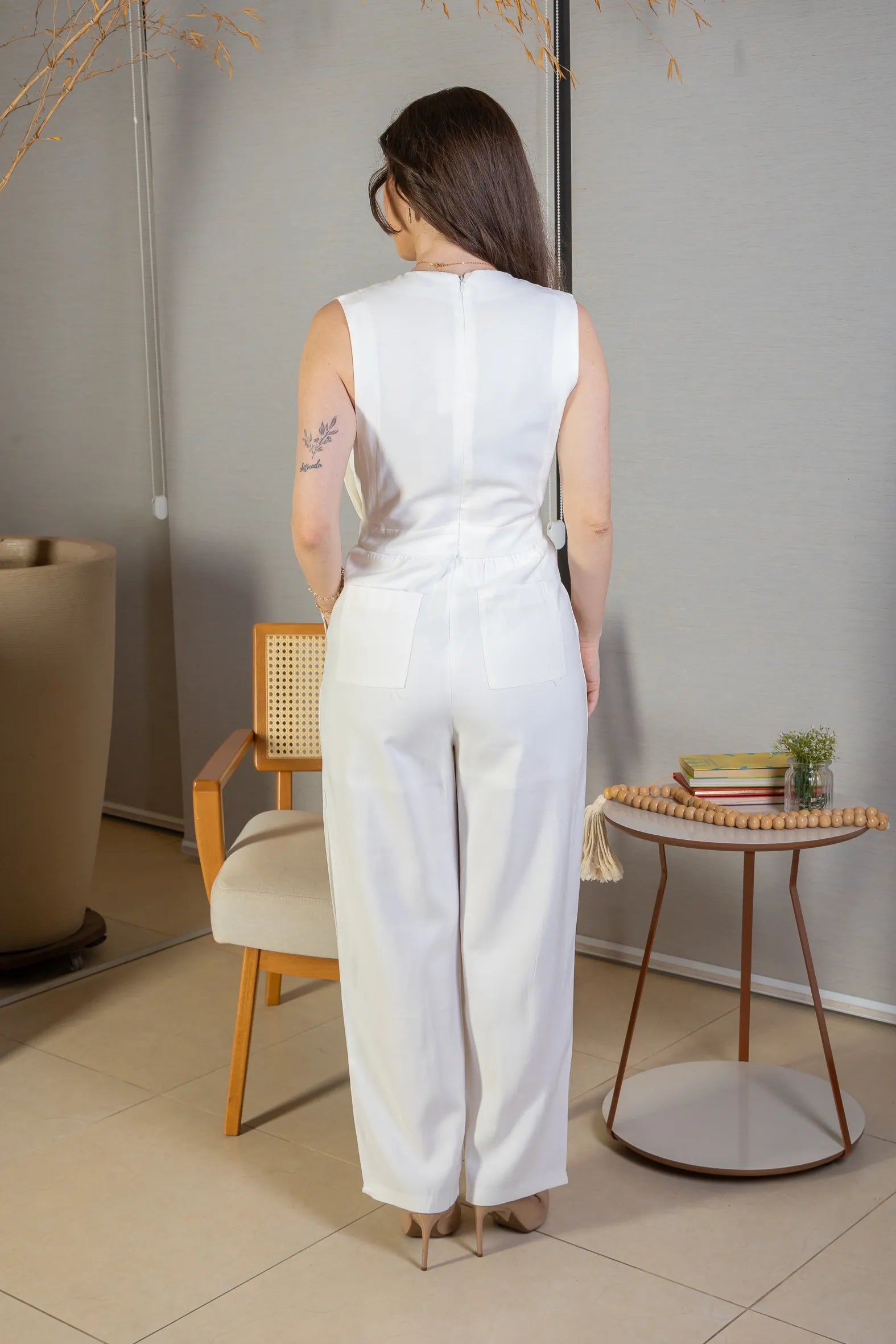 Macacão Alfaiataria Detalhe Bolso Juliana Paes Branco