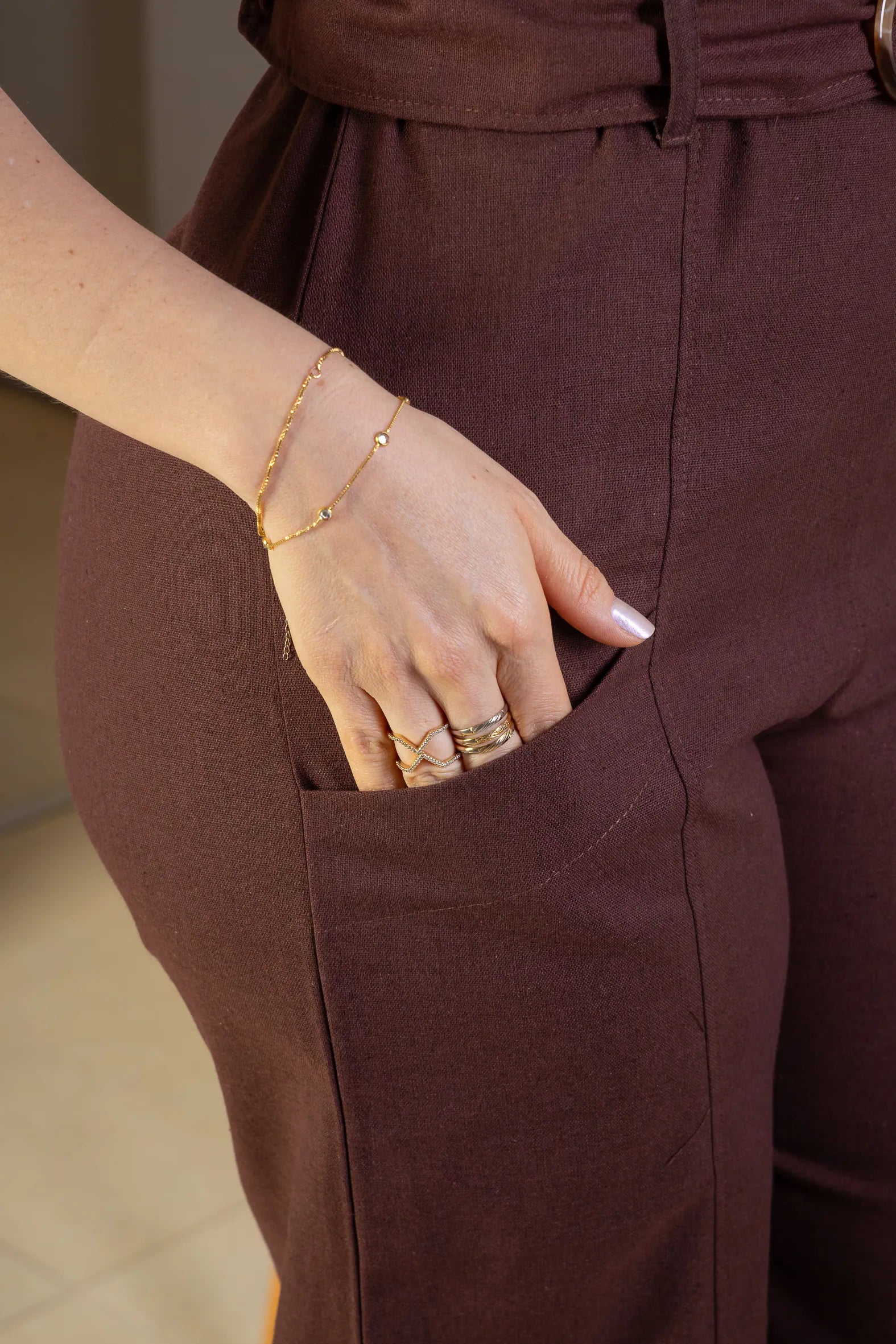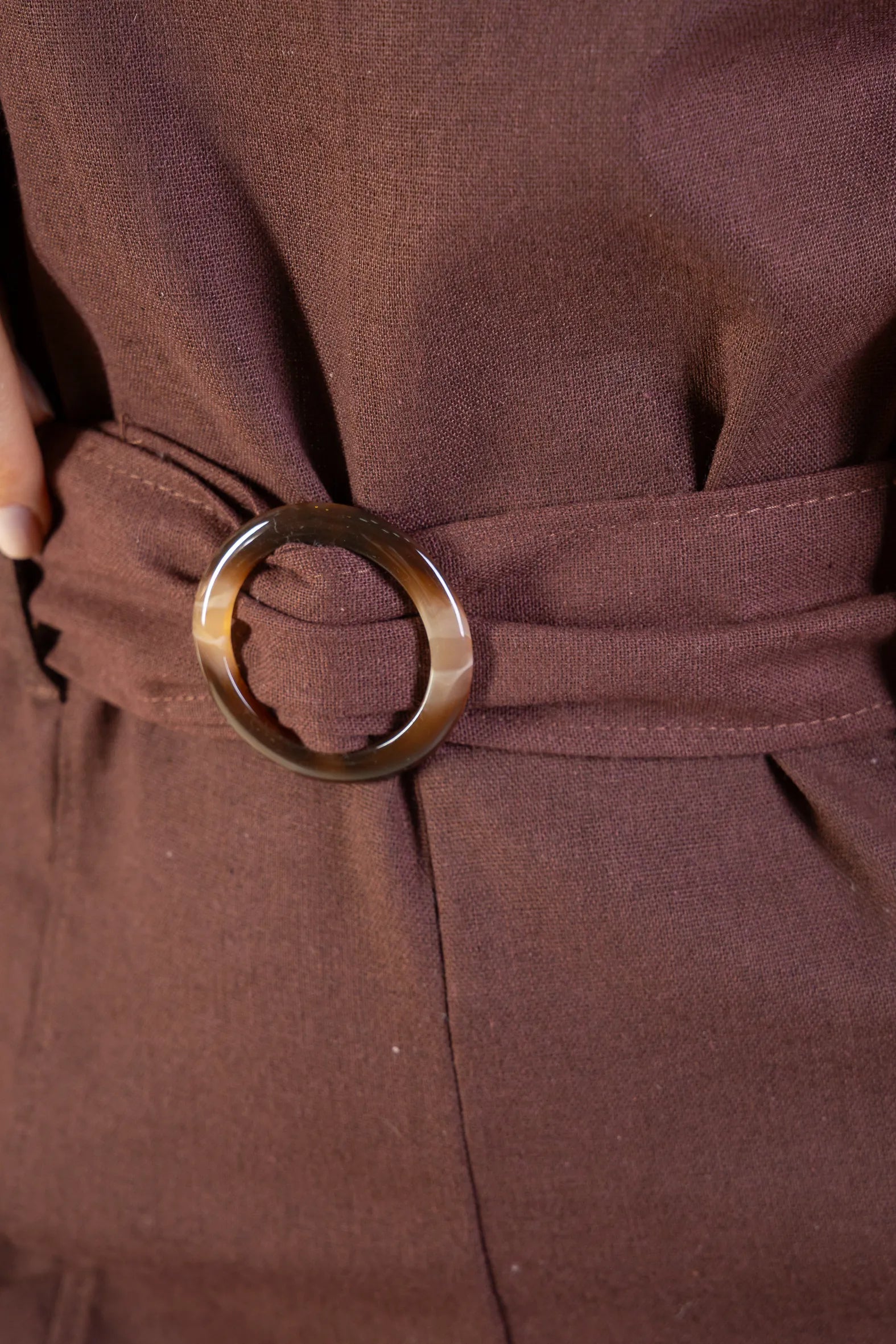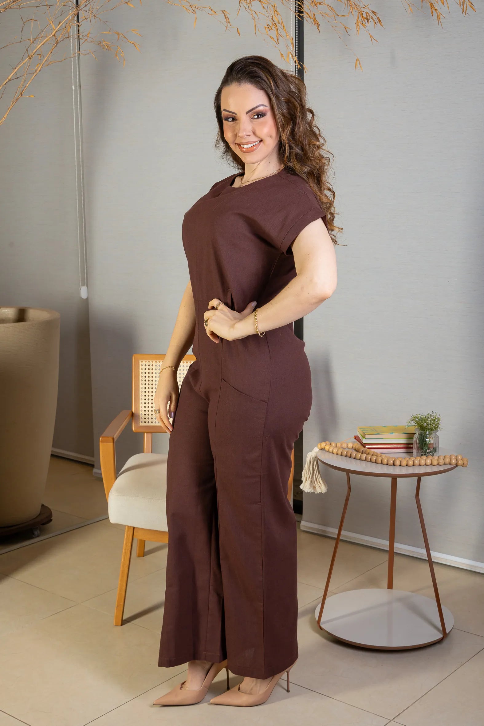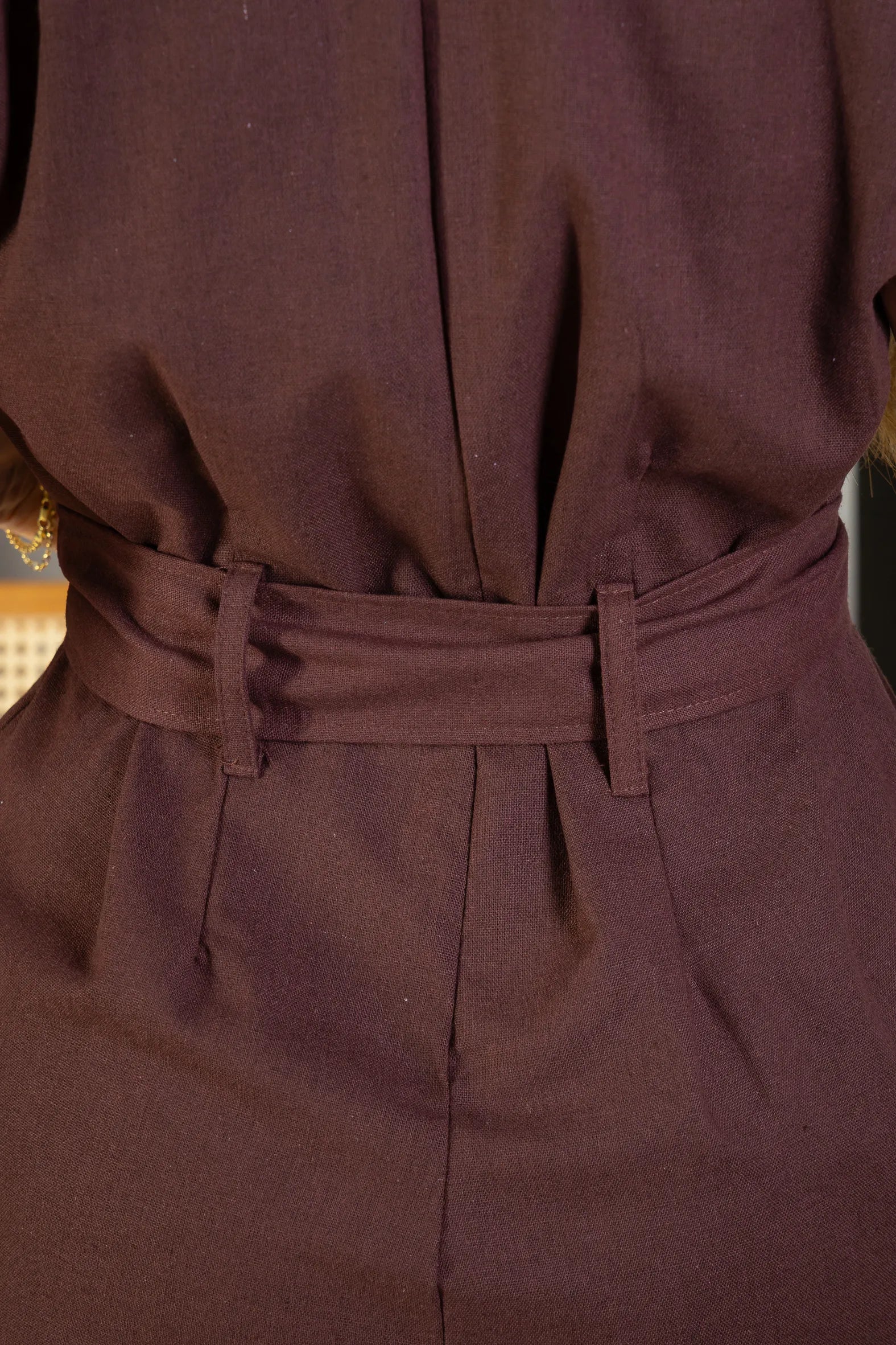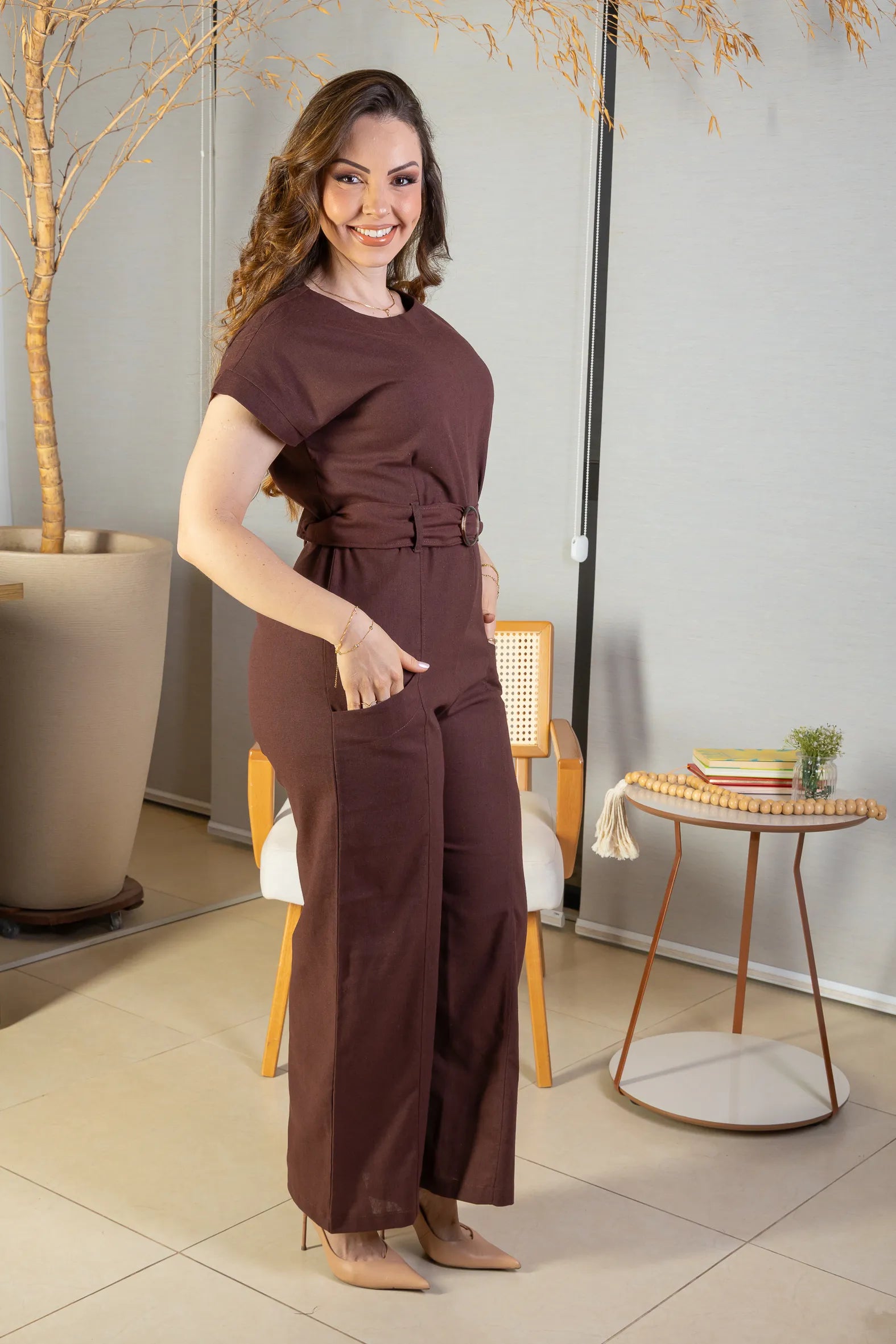 Macacão Detalhe Cinto Visco-linho Rita Lee Marrom