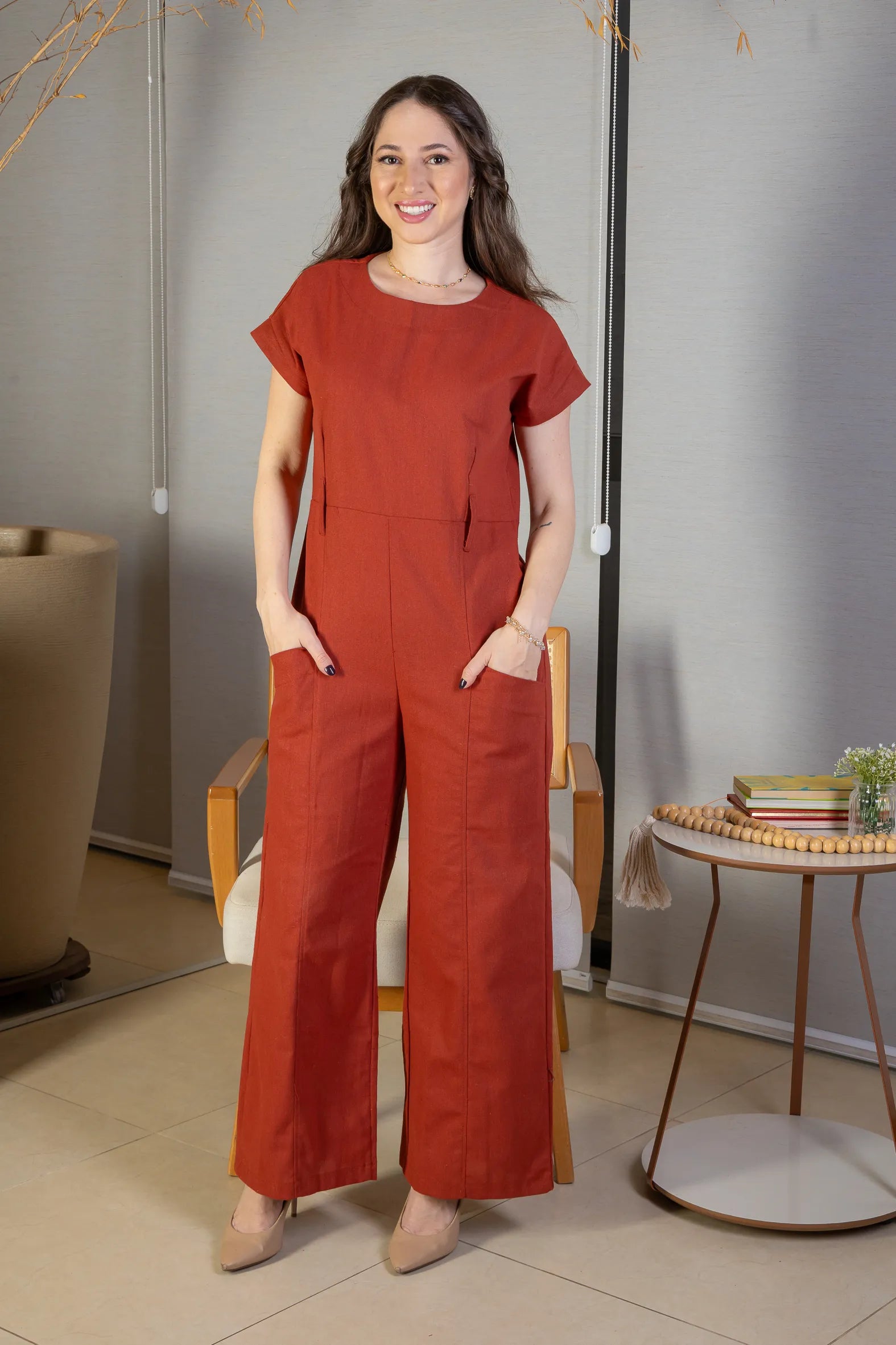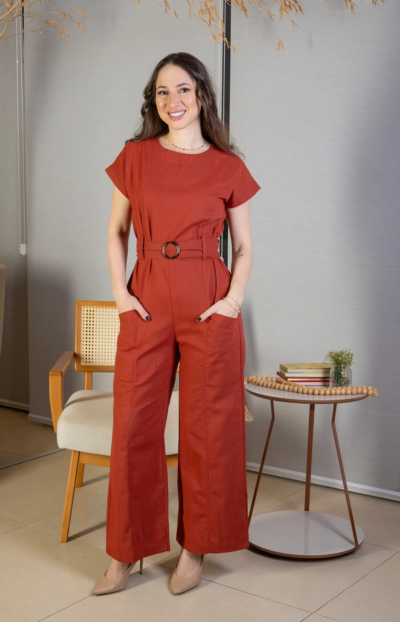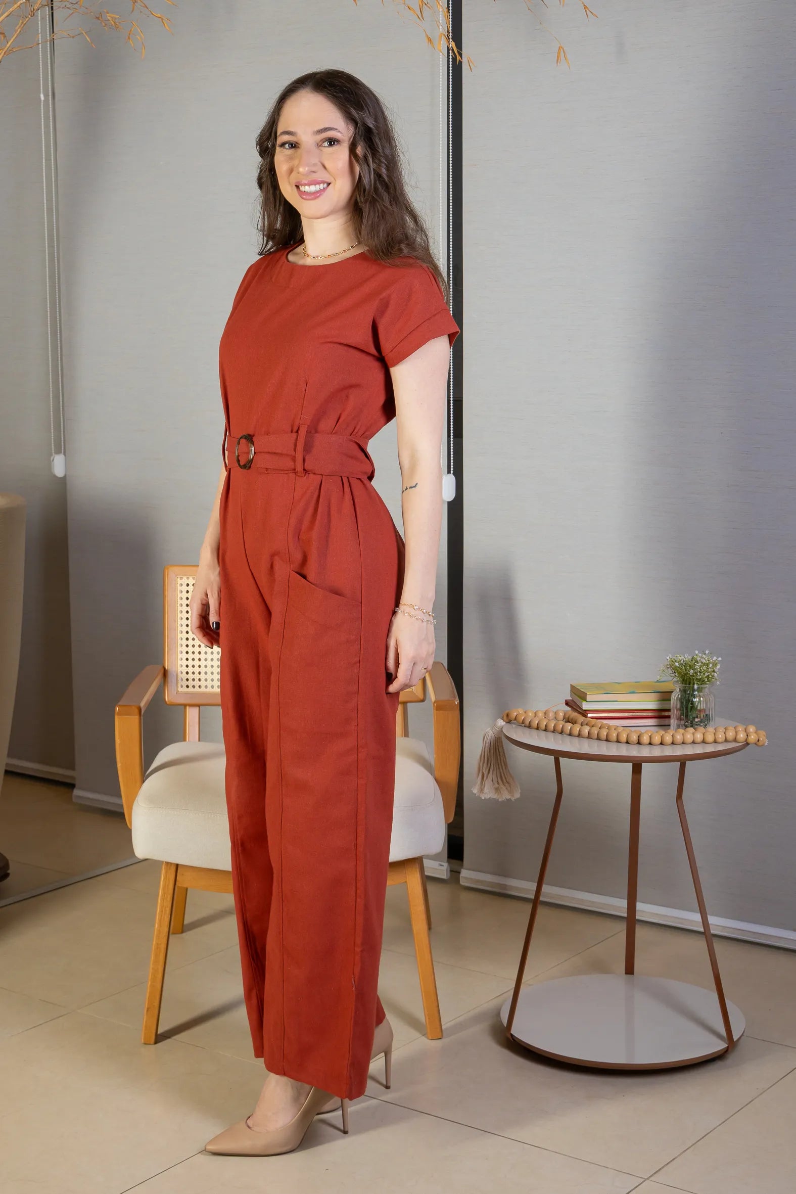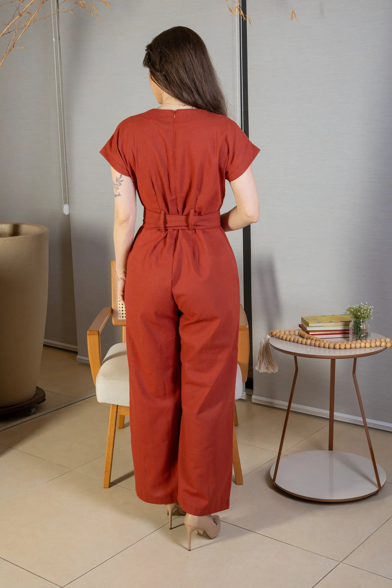 Macacão Detalhe Cinto Visco-linho Rita Lee Terracota