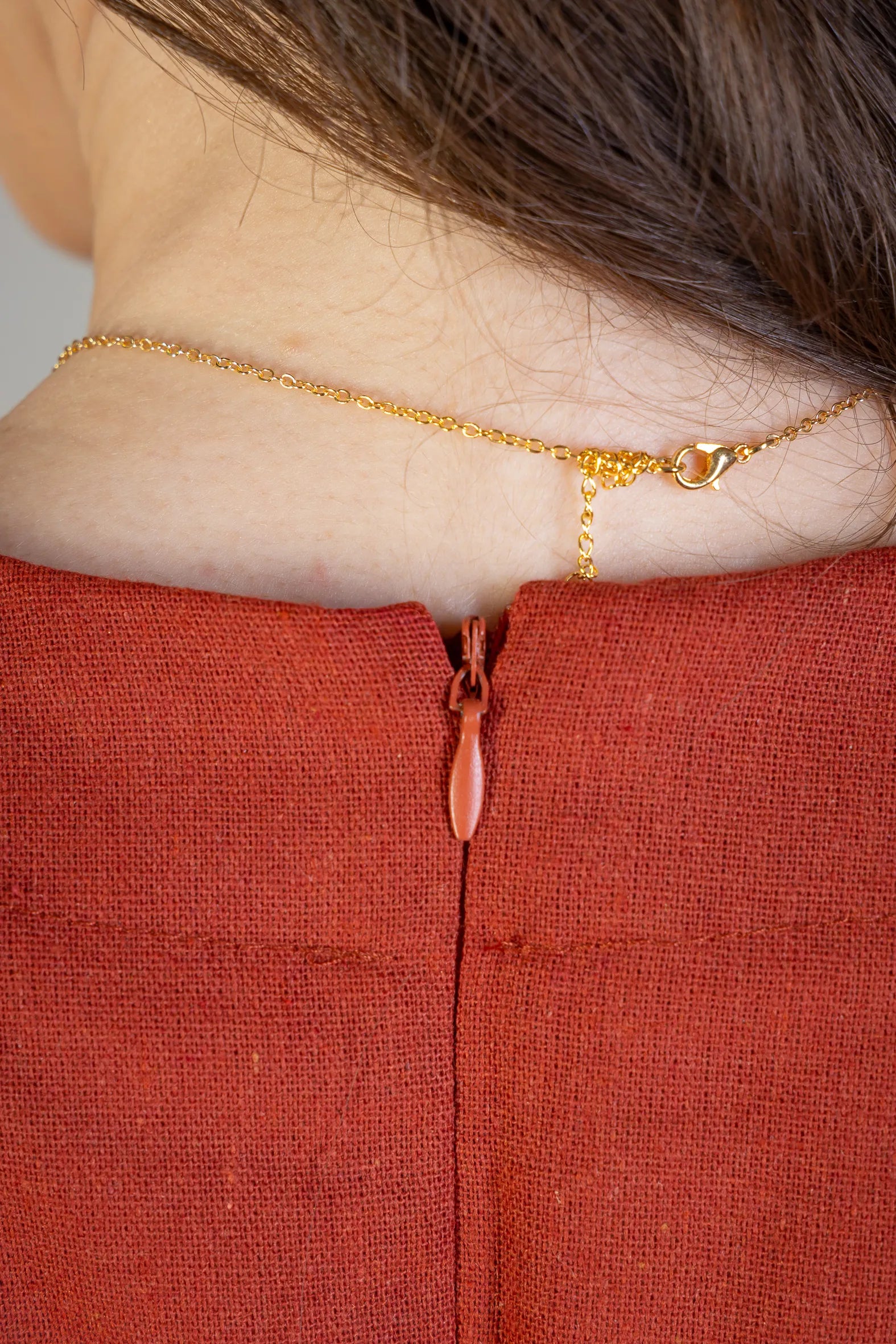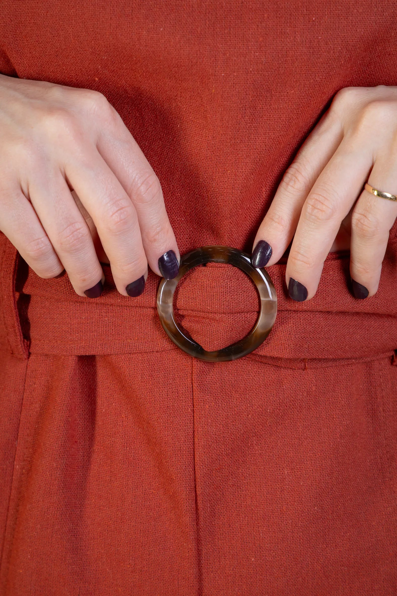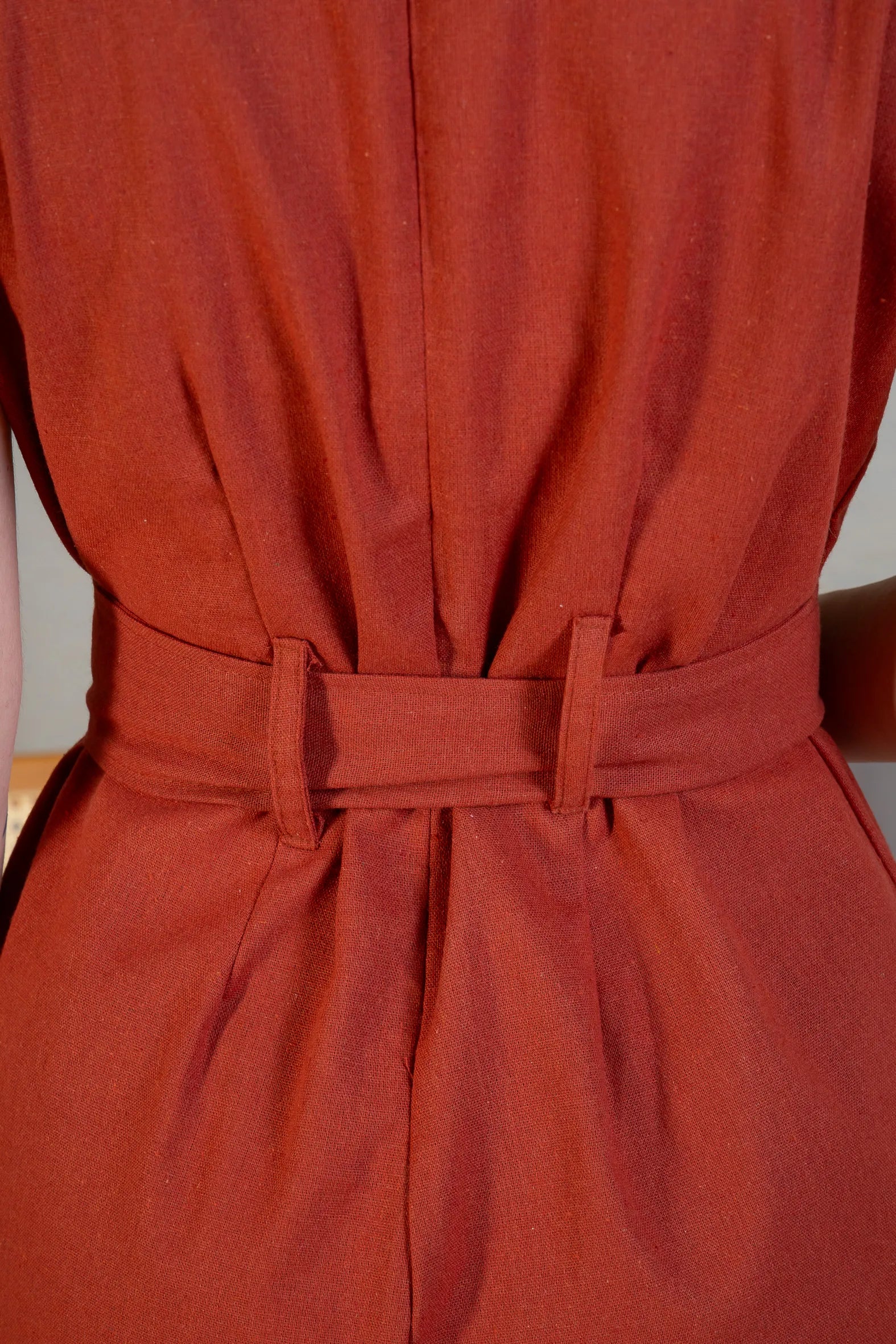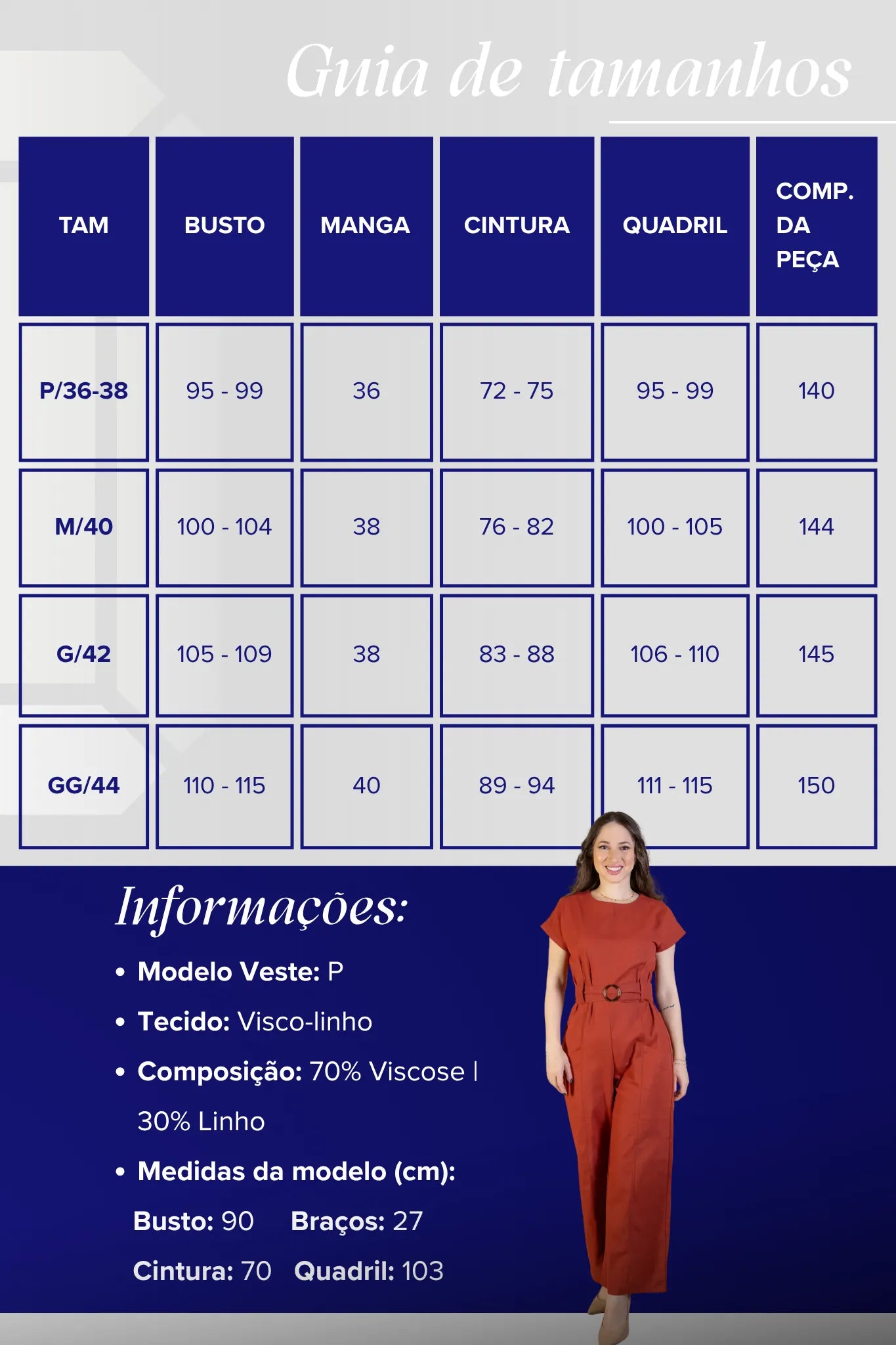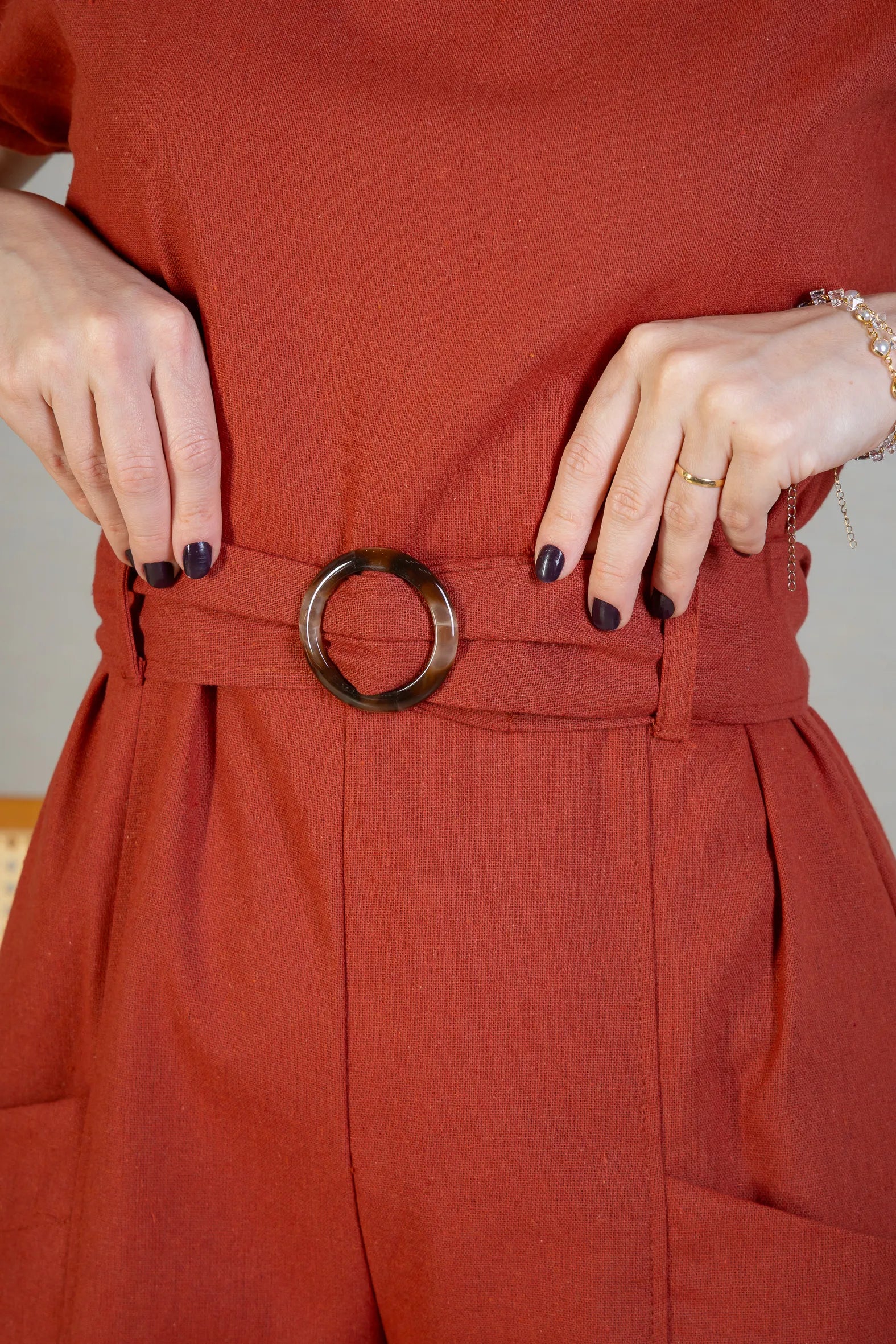 Macacão Detalhe Cinto Visco-linho Rita Lee Terracota