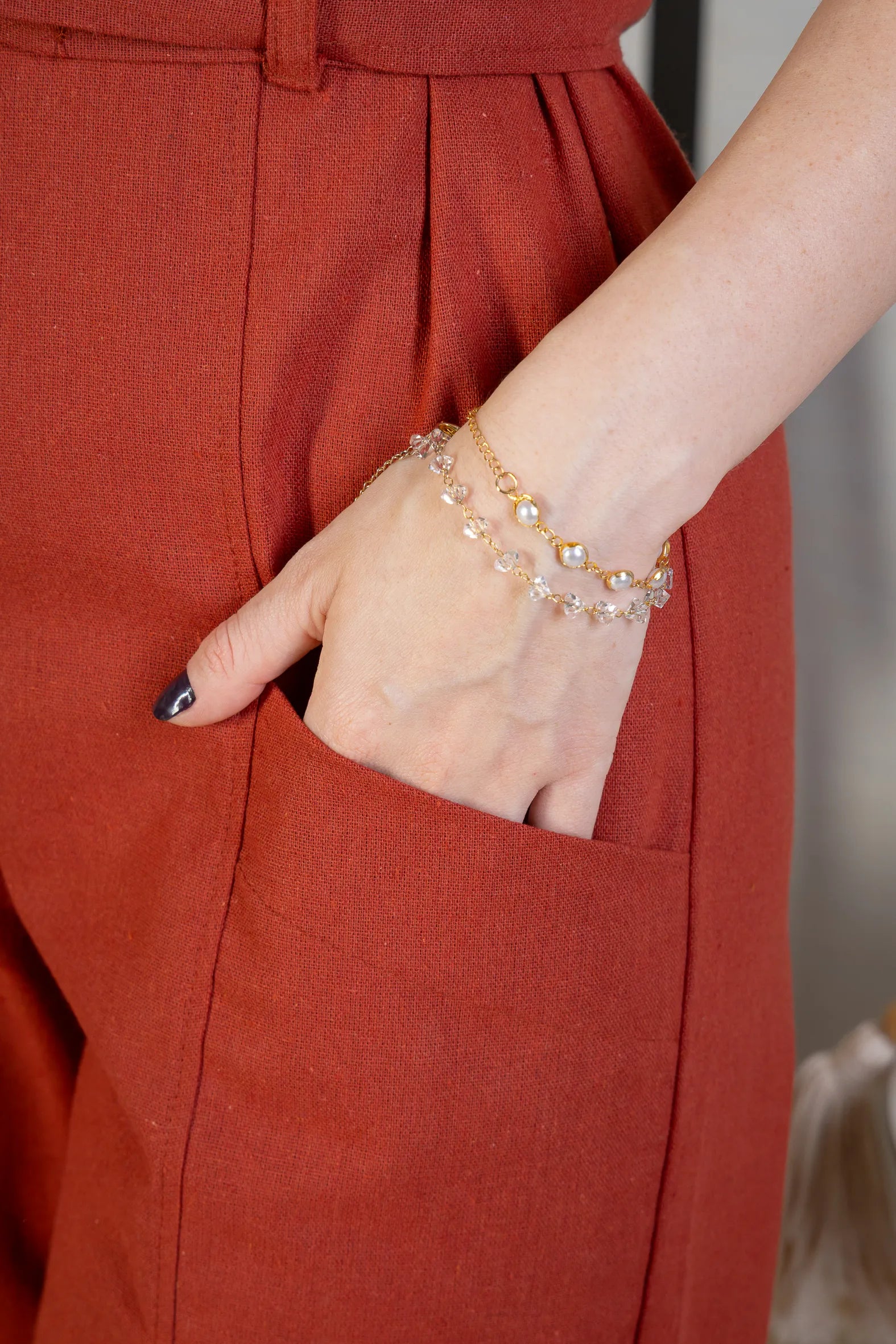 Confeccionado em tecido encorpado com toque natural, o modelo traz cintura marcada com cinto faixa ajustável e fivela em resina marmorizada, que destacam a silhueta de forma sofisticada. As mangas dobradas e o recorte reto nas pernas equilibram estrutura e conforto, compondo um visual moderno e cheio de presença.